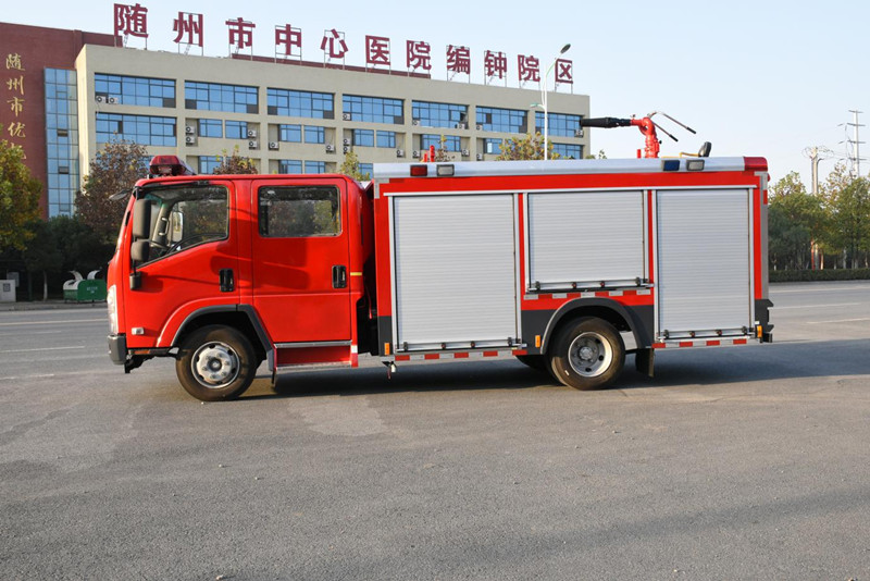 結(jié) 構(gòu):平頭、四開門雙排駕駛室,后排座位選裝3具空氣呼吸器托架。
